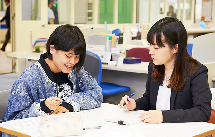駿河台大学キャリアセンターでは、求人情報の収集と提供、個別相談を中心としたさまざまな就職支援を行っています。また、学生が納得のいく進路決定ができるよう、さまざまな就職支援プログラムを実施しています。応募書類作成、筆記試験対策、マナー対策などの講座、面接トレー二ング、業界・企業研究セミナー、合同企業説明会の開催など、年間を通じて実際の就職活動に向けた実践的なプログラムを展開しています。