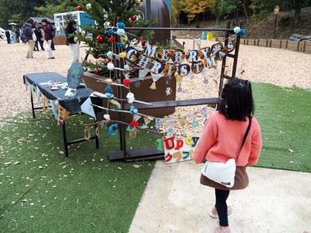 学部企画の他にも「飯能学」(担当:平井純子教授)の受講者が商店街など飯能の街並を歩いてスタンプラリーをしながらメッツァビレッジに向かう企画に参加しました。学生たちは、飯能駅をスタートして途中の和菓子屋に立ち寄るなど地元飯能の街を楽しみつつ、思い思いのコースを辿り、チェックポイントを通過しながら約1時間かけてメッツァビレッジを目指しました。