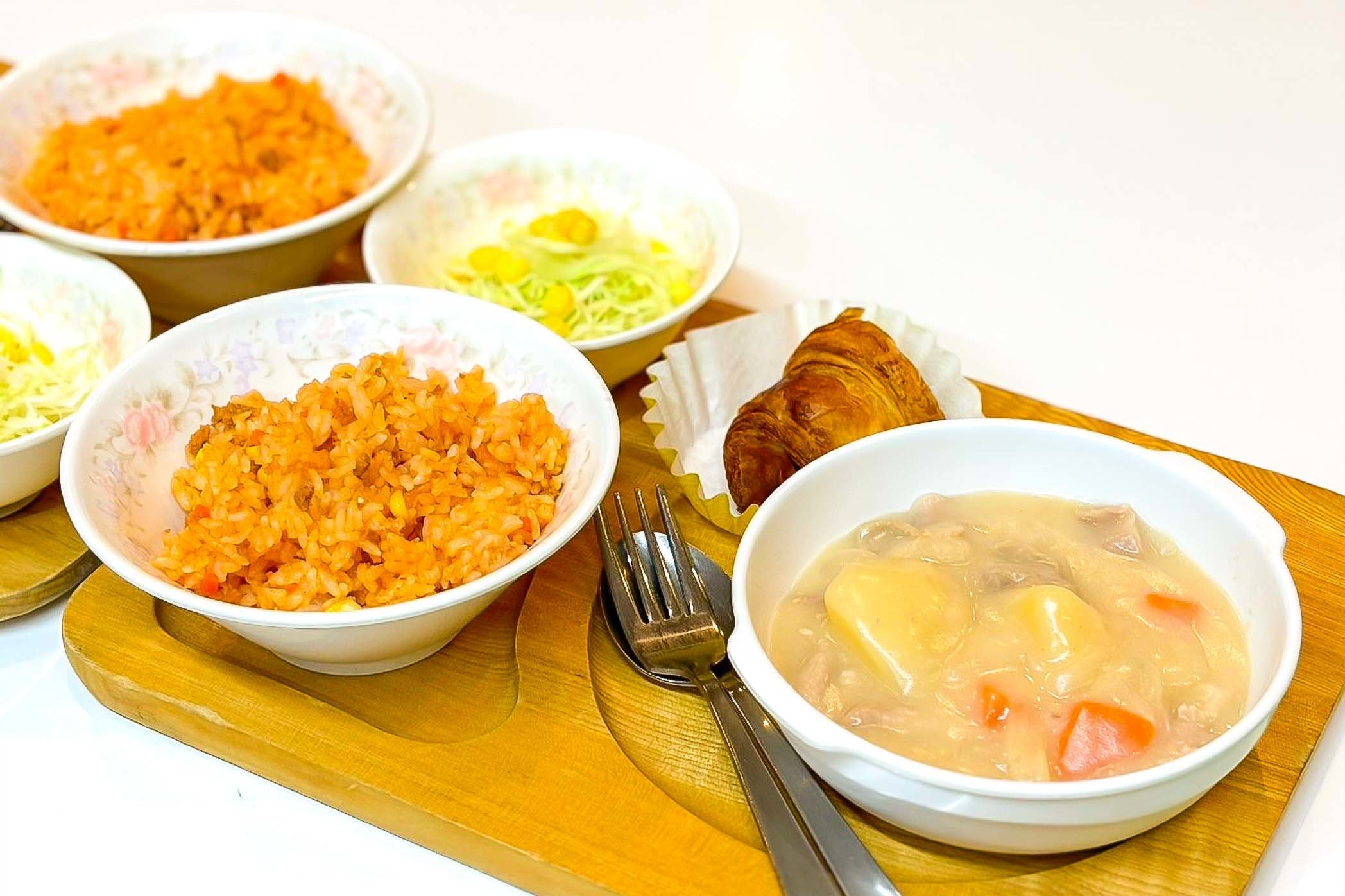 メニューは、冬にぴったりのシチュー&ケチャップライス&サラダ&チョコレートクロワッサン(ハーフ)で500円!毎日限定20食の提供となります。