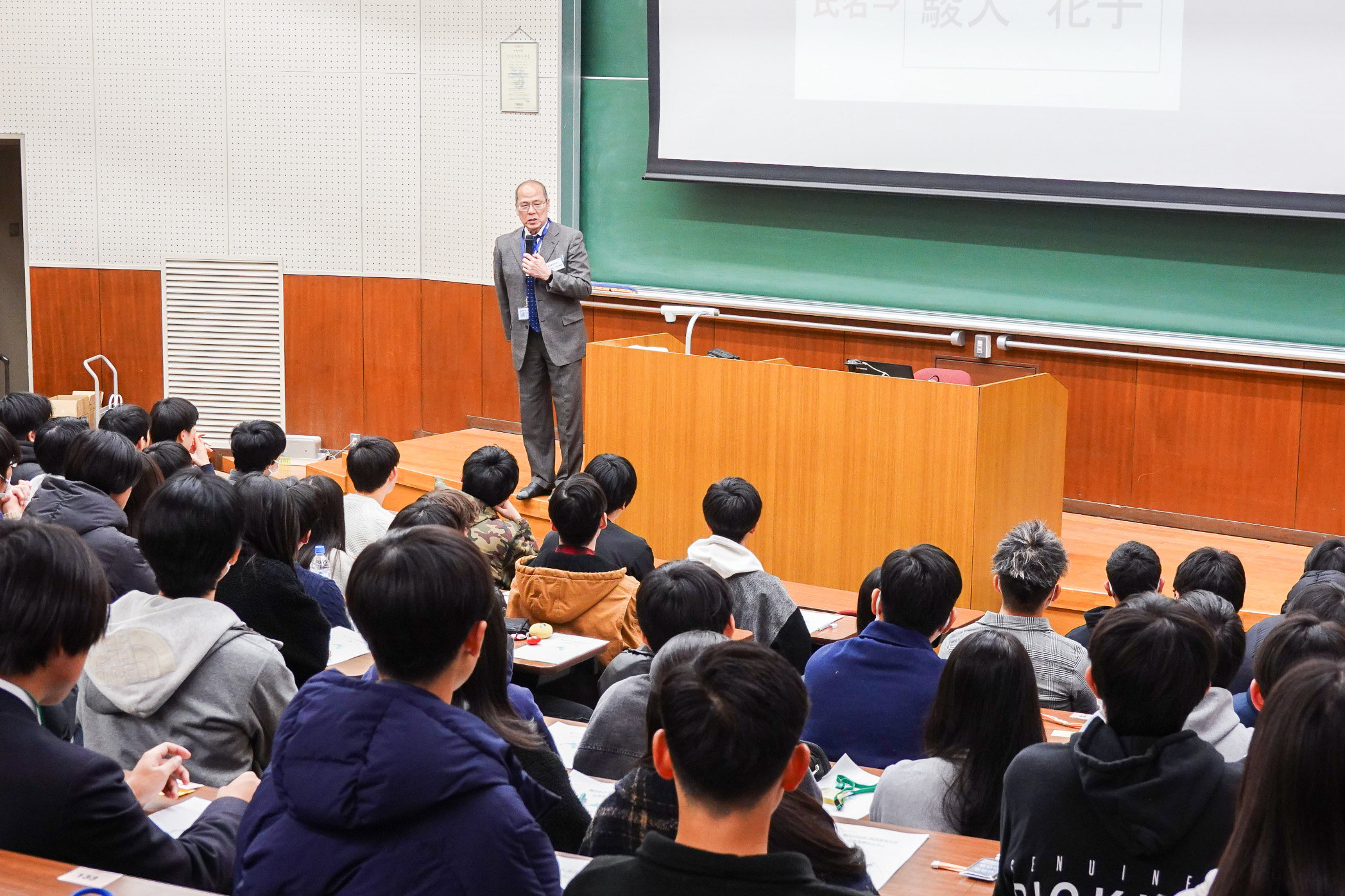 この日は約130名の入学予定者の皆さんが参加しました。野田裕康学部長のあいさつに続いて、以下のプログラムが実施されました。