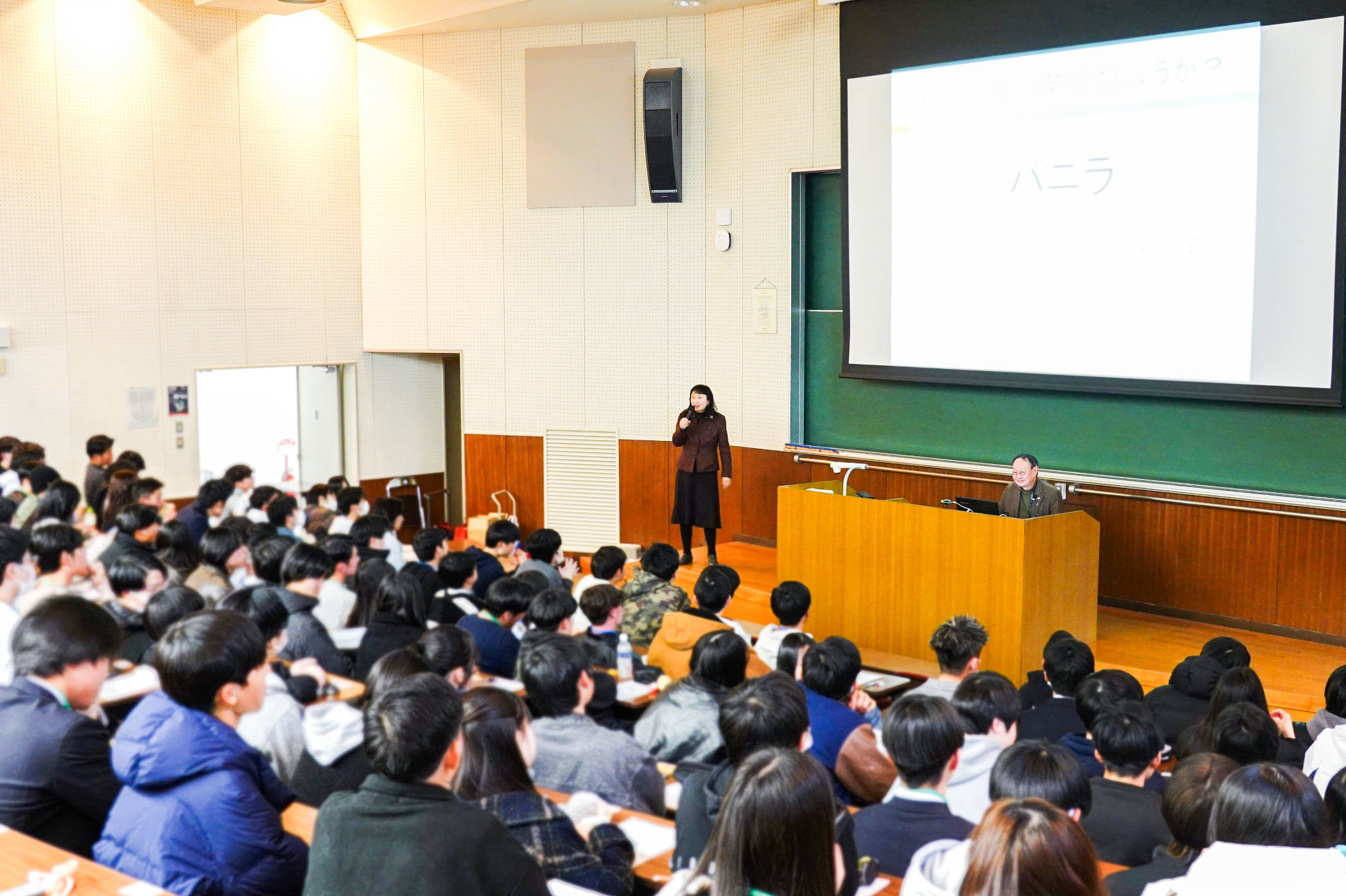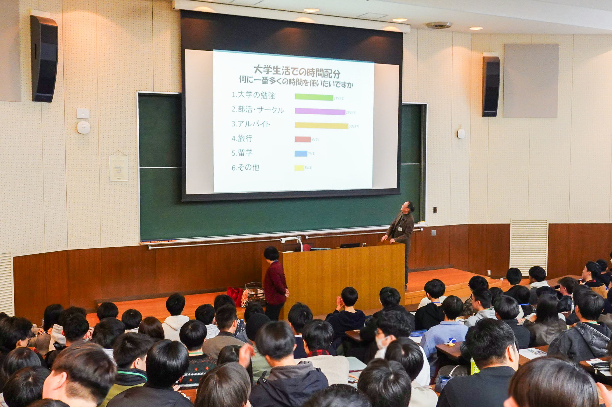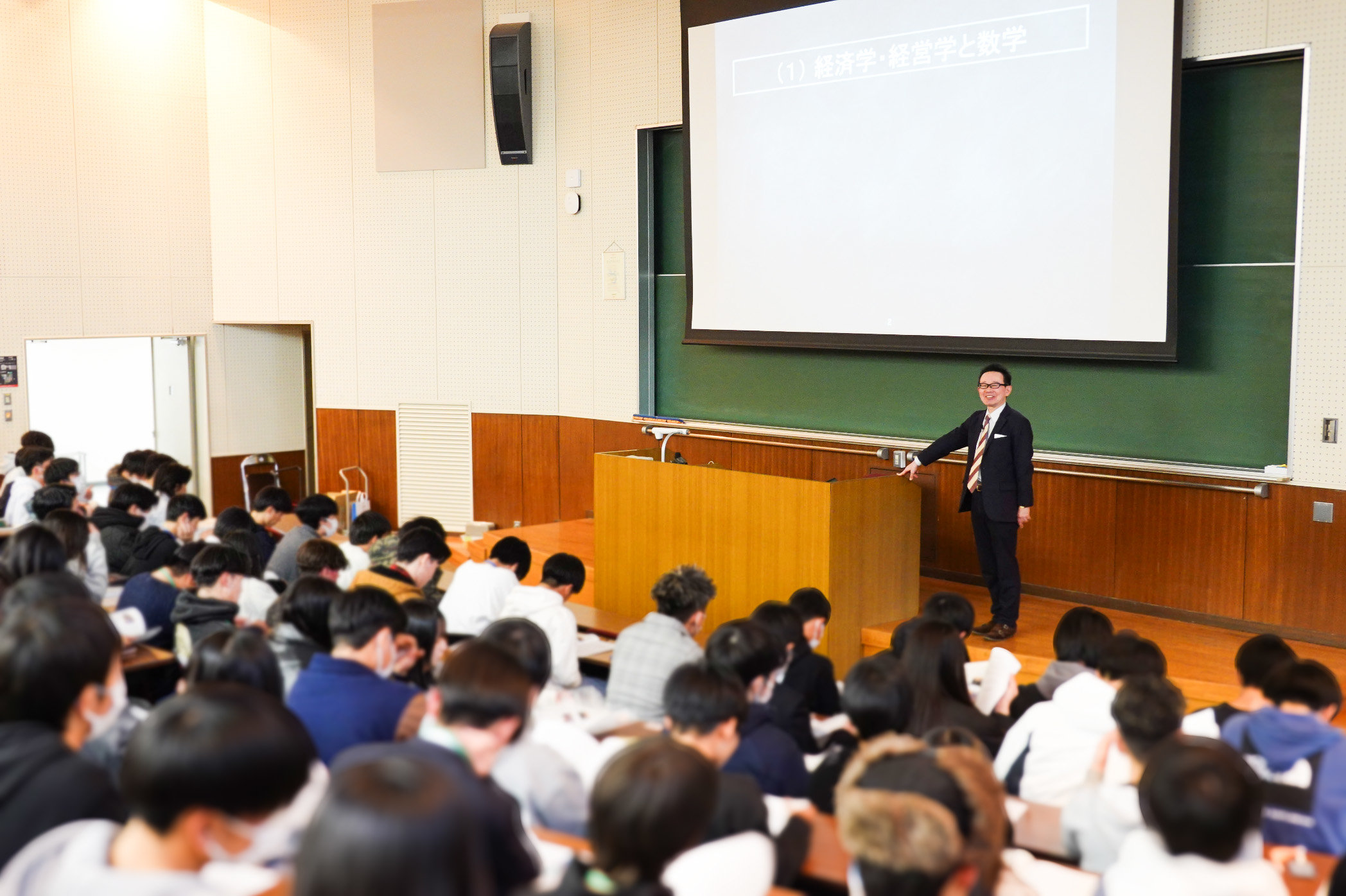 2025年2月1日(土)午後2時から経済経営学部入学準備セミナーが開催されました。これは大学での勉強方法や生活の不安を少しでも解消するために、推薦入試・総合型選抜・特別入試(年内実施)による入学予定者を対象におこなわれるものです。