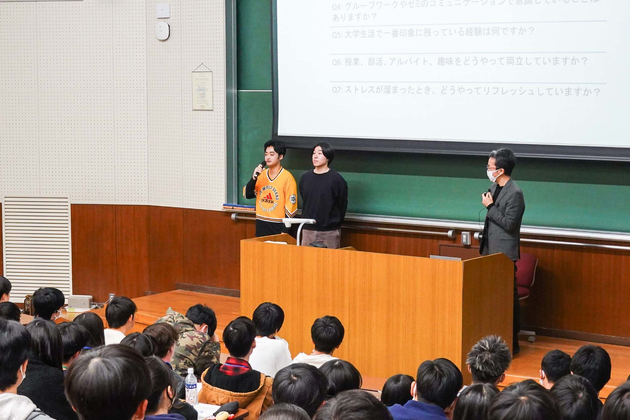 石川清貴講師の進行による、経済経営学部4年生栗間咲丞さんと篠原直喜さんの大学での生活についての話