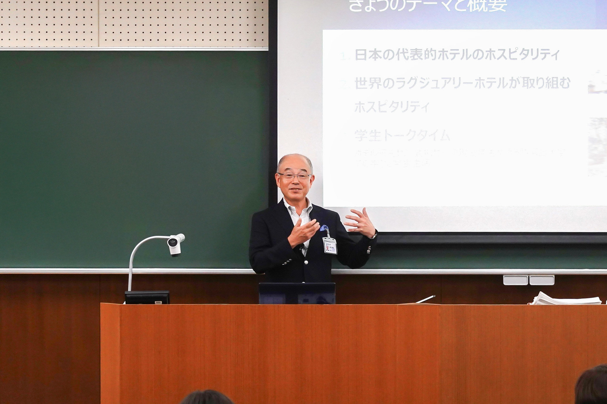 式場40年以上にわたるホテルビジネスの最前線での豊富な経験をもとに大学教育に携わる「実務家教員」として、ホテルやレストラン、ブライダルをはじめとするホスピタリティビジネスの実践的な知識やノウハウの伝承です。
