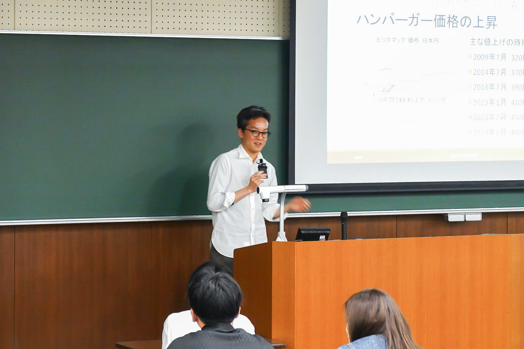 次回のオープンキャンパスは7月19日(土)、20日(日)の連続開催の予定です。経済経営学部の授業体験は、式場朝夫特任教授が「ホテルのホスピタリティの最前線~ラグジュアリーホテルの元マネジャーが語る舞台裏~」、石川清貴准教授が「食のインフレ~ファストフードが贅沢品になる未来がくる?~」のタイトルで担当し、2種の授業を両日ともに実施します。タイムスケジュールはオープンキャンパスの案内ページでご確認ください。