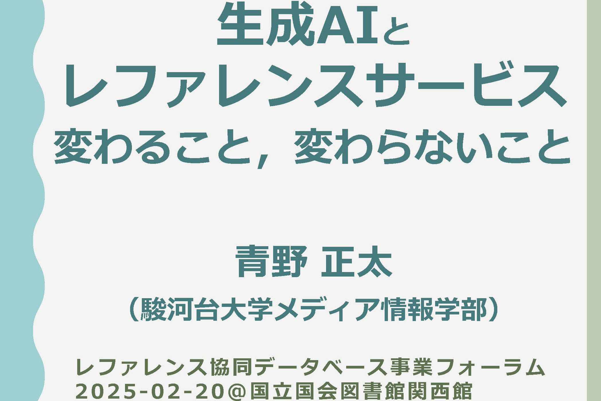 - 青野正太講師が「生成AIとレファレンスサービス」について講演を行いました