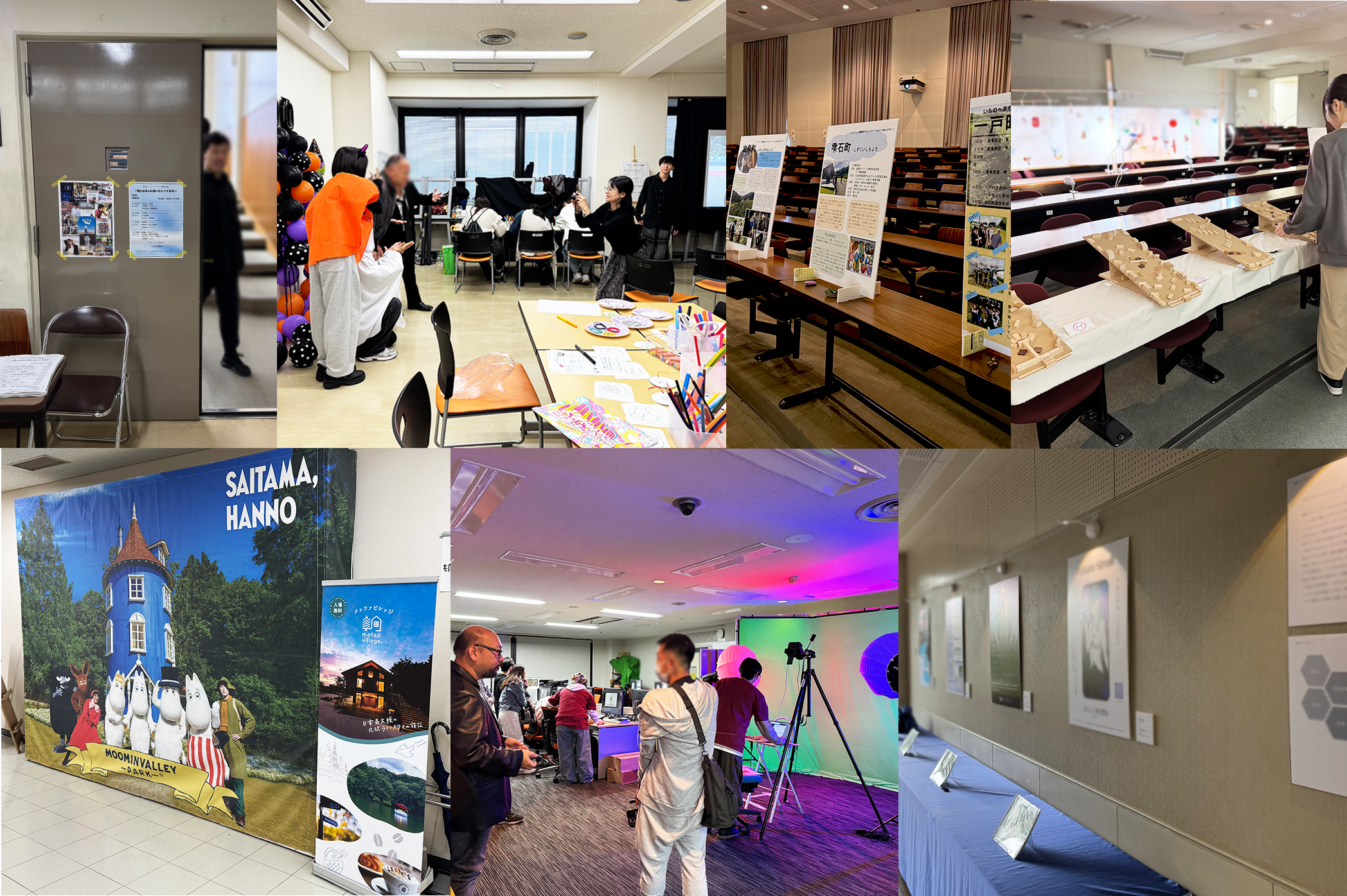 メディア情報学部では、映像やデザインの分野を中心に複数のゼミナールやプロジェクトの展示がおこなわれました。ゼミナールの受講生の作品発表のみならず、来場者の皆さまが参加し「創る」活動をするワークショップ形式の展示もあり、あいにくの雨模様ではありましたが各展示会場では多くの人でにぎわっている様子が見受けられました。