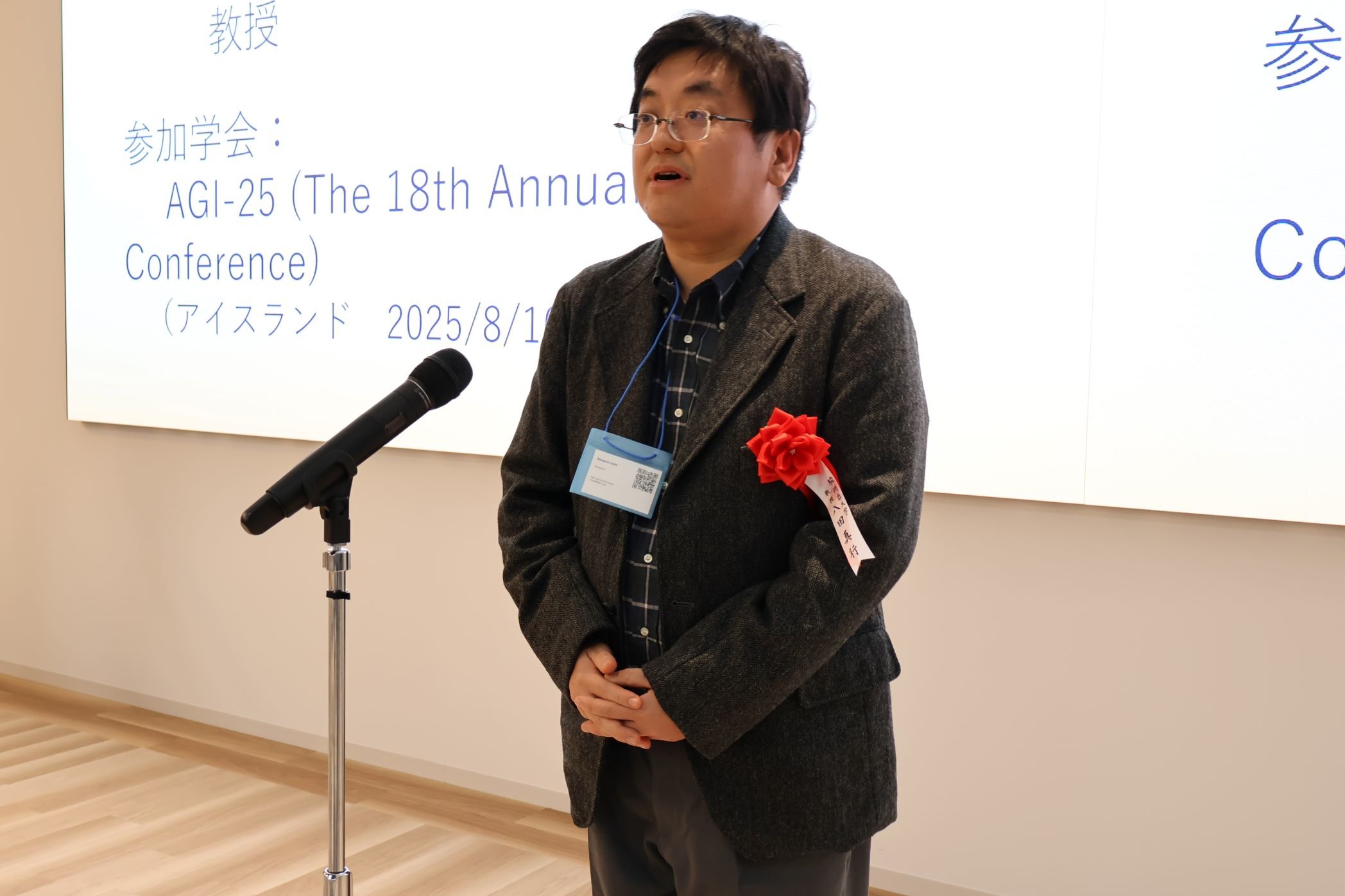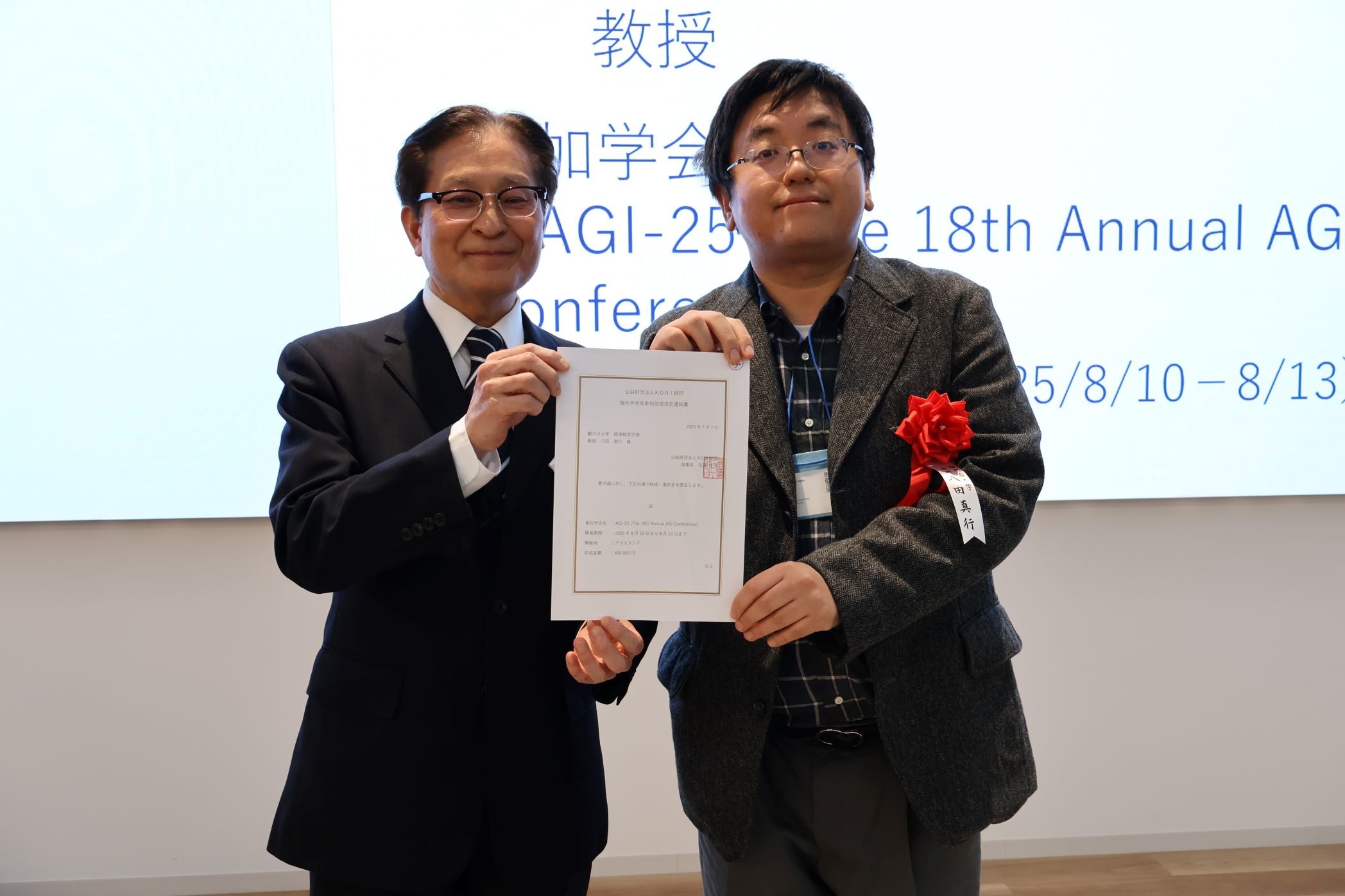 八田教授は2025年8月にアイスランドで開催された AGI-25 (The 18th Annual AGI Conference) に参加しました。AGI-25 は、人間のような汎用的な知能を持つ人工知能の研究に特化した世界最古かつ最も権威のある会議です。1月27日の授与式では、この会議への参加に対する助成金が授与されました。