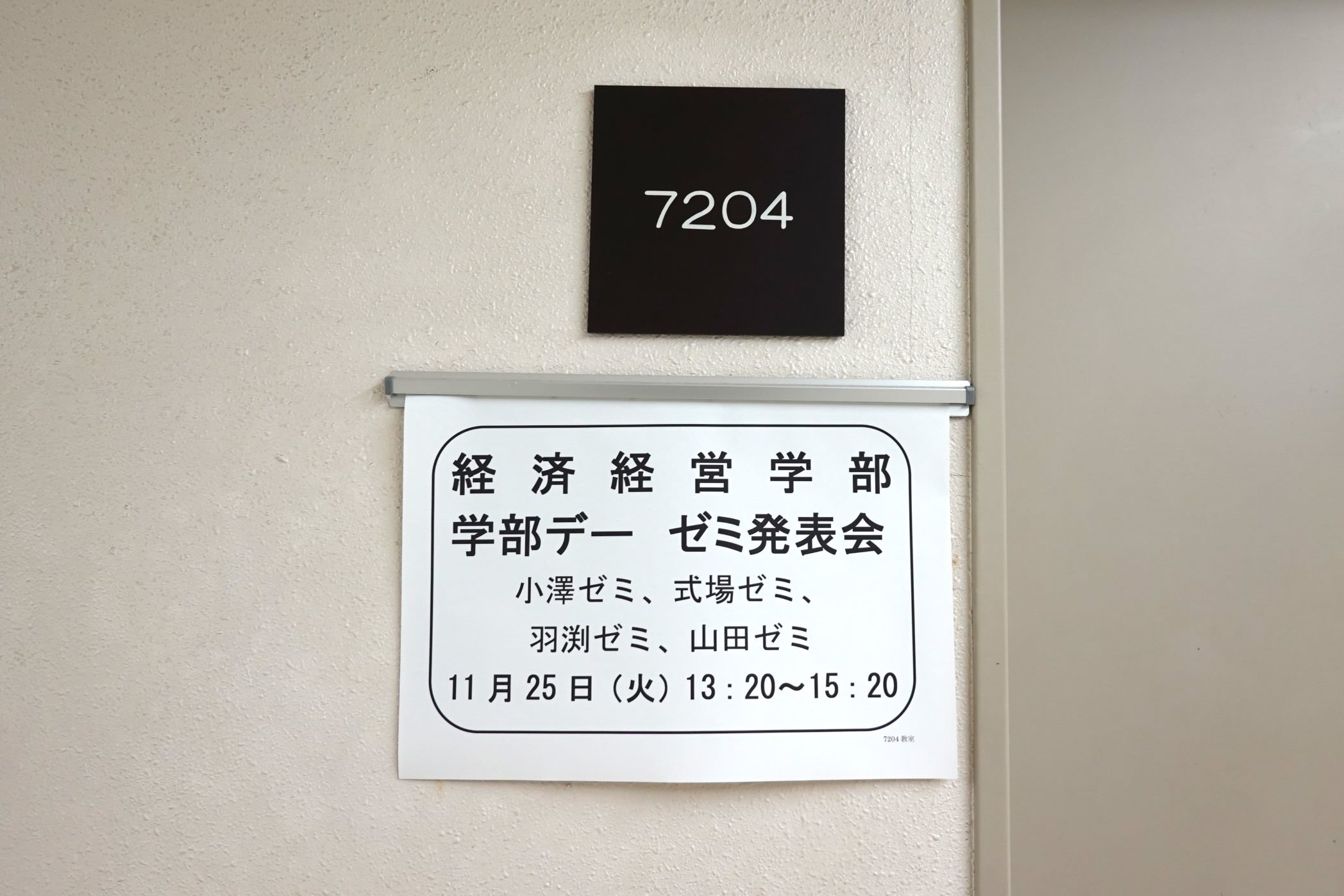 今回は7204教室での小澤ゼミ・式場ゼミ・羽渕ゼミ・山田ゼミの発表について紹介します。
