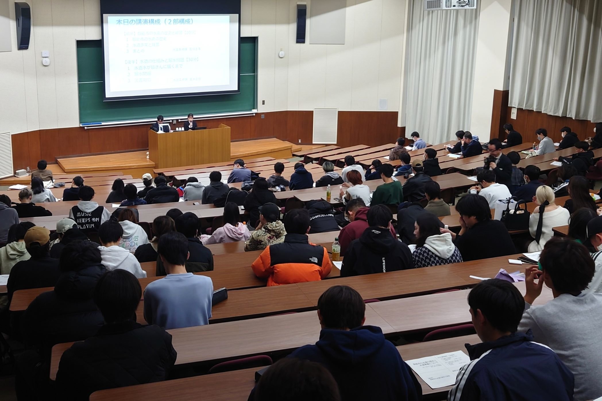 経済経営学部の1年次ゼミ(プレゼミナールⅠ・Ⅱ)では、通常のゼミ活動に加え、折にふれて外部講師をお招きし、合同授業を行っています。