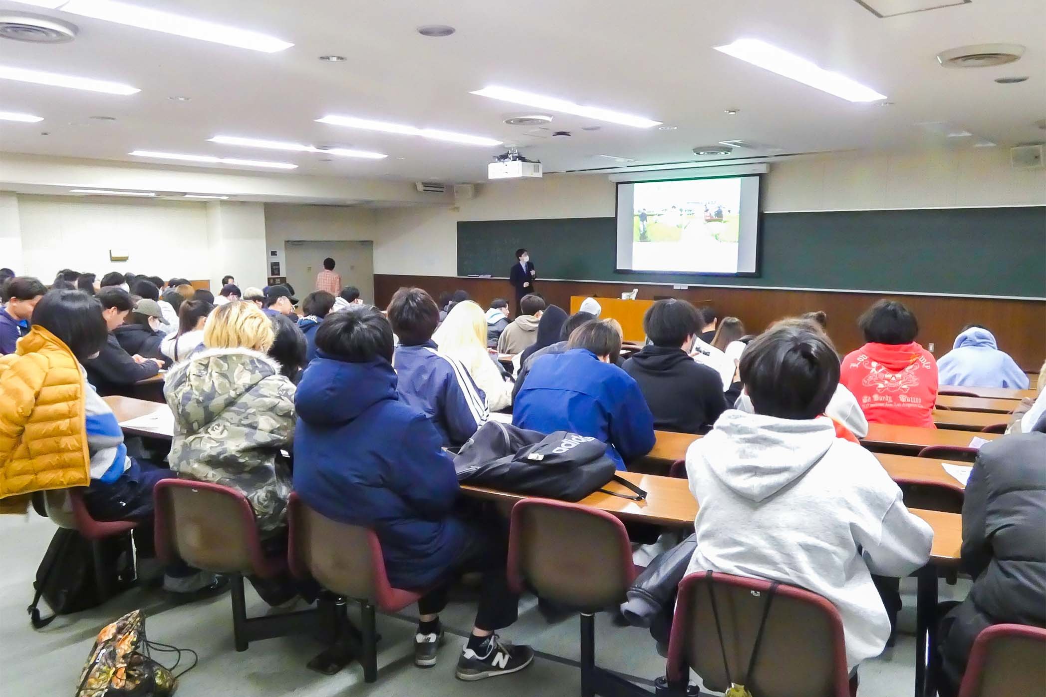 経済経営学部の1年次ゼミでは、2025年12月11日(木)の合同授業に入間市博物館学芸員の小田部家秀様にお越しいただき、「お茶の基礎知識」と題してお茶の生産から販売まで、さらにお茶の歴史や文化について、お話しいただきました。