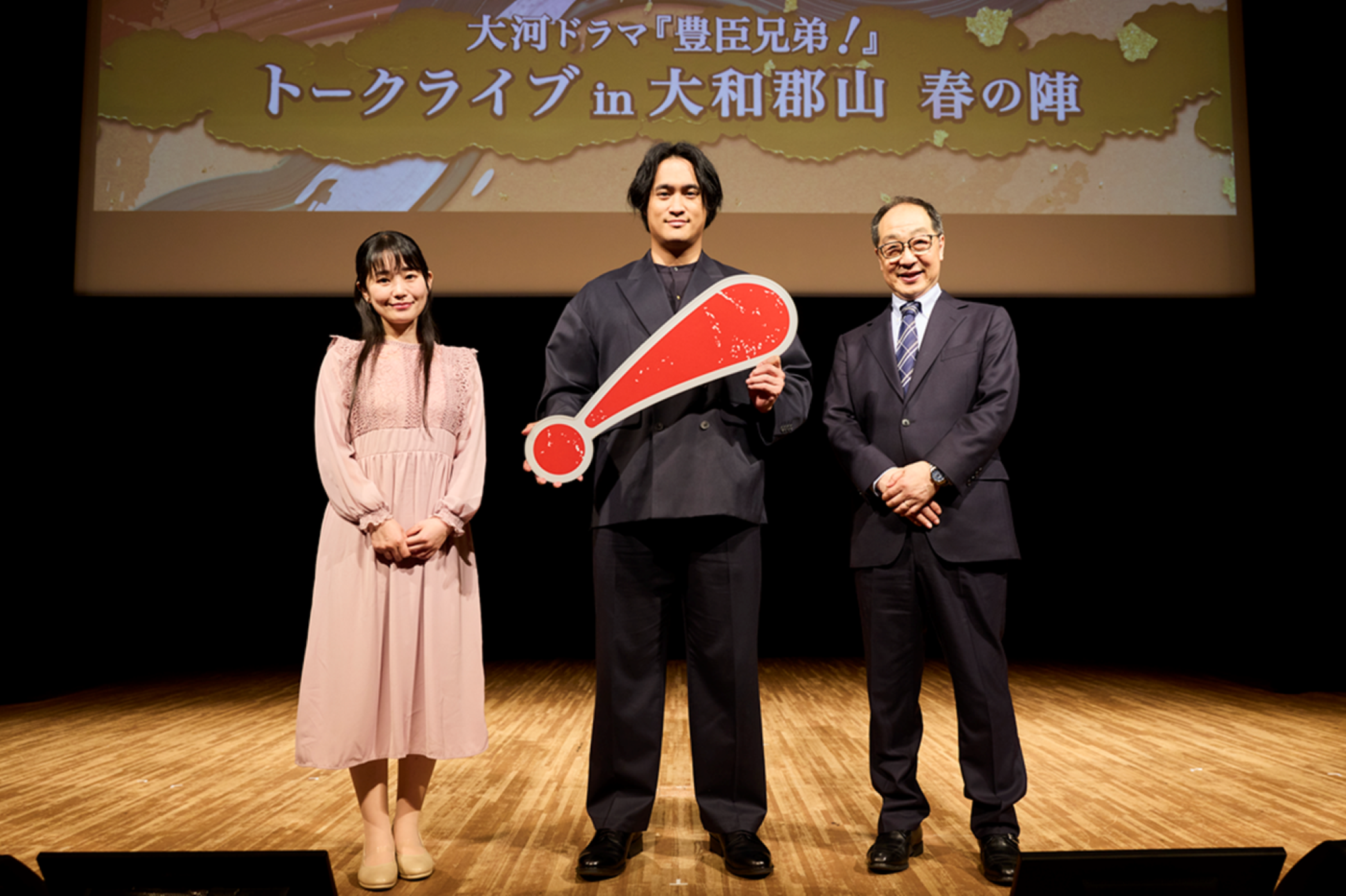 3月29日に、大和郡山市で、「大河ドラマ「豊臣兄弟!」トークライブin大和郡山 春の陣」が開催されました。藤堂高虎役の佳久創さん、司会の歴史タレント・小栗さくらさんとともに、出演させていただきました。今回は、その時の記念写真を紹介しておきます。