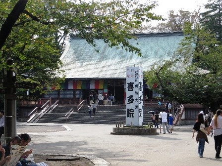 バスの一日乗車券を買って、早速バスで喜多院へ。学生が引いたおみくじに凶が出たなどと一通り騒いだ後、川越散策一つ目のメイン、「客殿・書院・庫裏」を見学しました。これは江戸時代の川越大火後、徳川家の命により移築された江戸城紅葉山御殿の一部で、徳川3代将軍である家光誕生の間や、その乳母であった春日局化粧の間が含まれています。ここでは時間を少し長めに取り、解説を含めてじっくり見学しました。