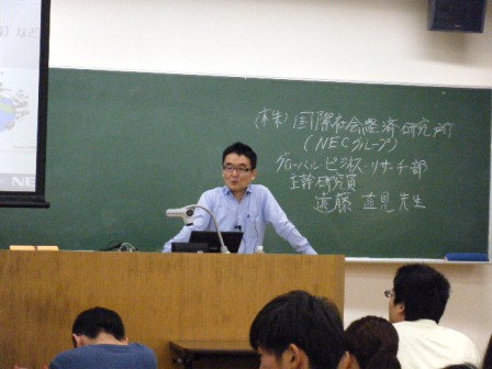 今回は株式会社国際社会研究所(NECグループシンクタンク)グローバル・ビジネス・リサーチ部 主幹研究員 遠藤 直見さんに講義を行っていただきました。