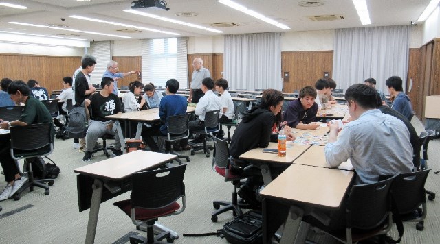 5月23日(木)、経済経営学部の1年生のうち、明石教授、小澤教授、増田教授担当のプレゼミナールⅠ(初年次演習)を受講する学生が、合同授業としてかるた大会を行いました。明石教授と小澤教授担当のクラスは留学生クラスで、かるたを通じた留学生と日本人学生の国際交流が目的です。留学生にとっては、日本について教科書などとはまた違った観点から知る機会となり、日本人学生にとっては、留学生に対し自分自身や日本の文化についてプレゼンをしてみる良い機会となりました。どのグループも、「となりのトトロかるた」や「アンパンマンかるた」といった子ども向けのものから、「日本の歴史かるた」や「上毛かるた」など様々なかるたを数種類経験し、「坊主めくり」にも挑戦しました。留学生から寄せられた感想をご覧ください。