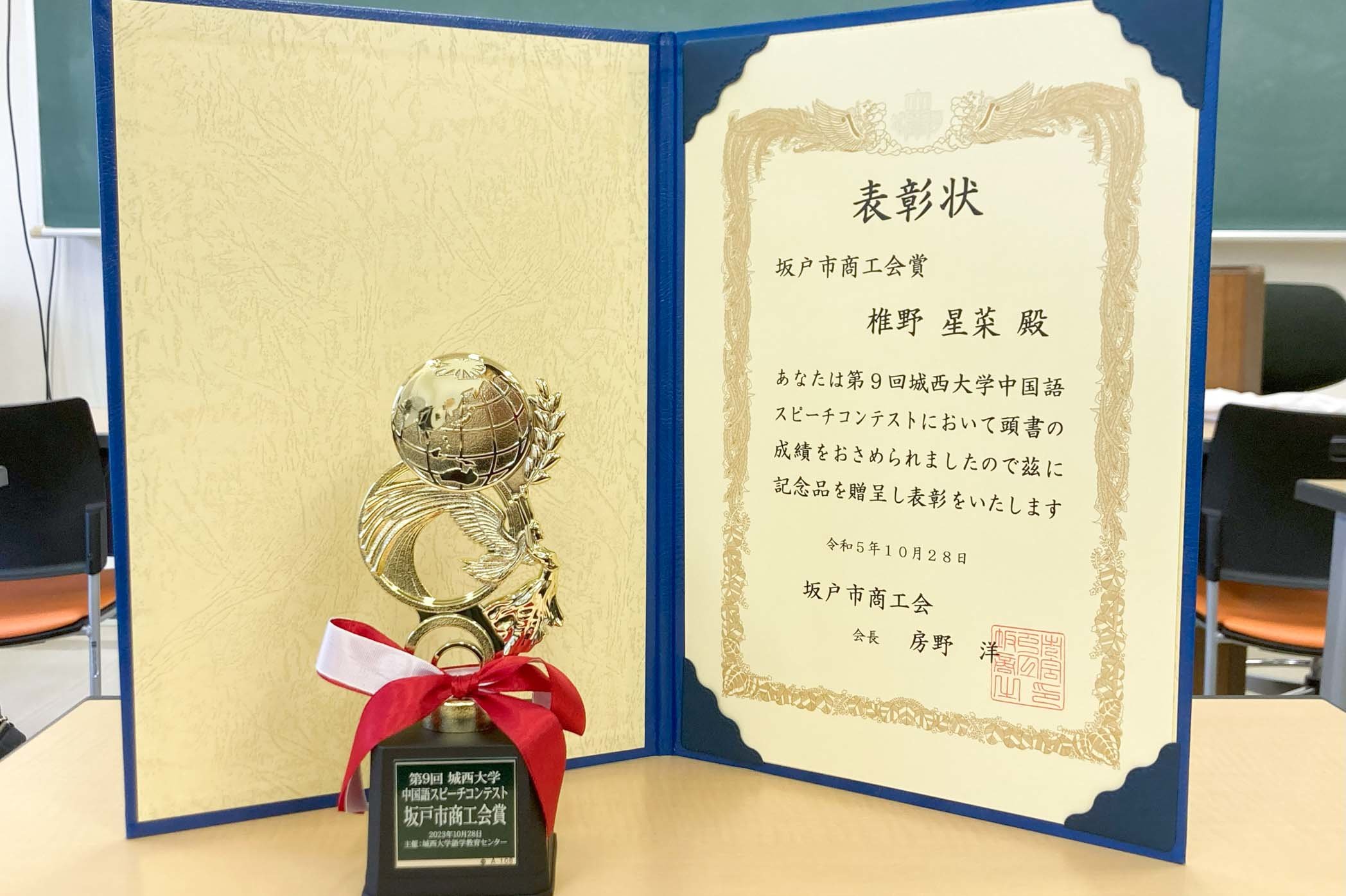 私は、2023年10月に行われた第9回城西大学中国語スピーチコンテストスピーチ部門において、城西大学父母後援会賞をいただきました。