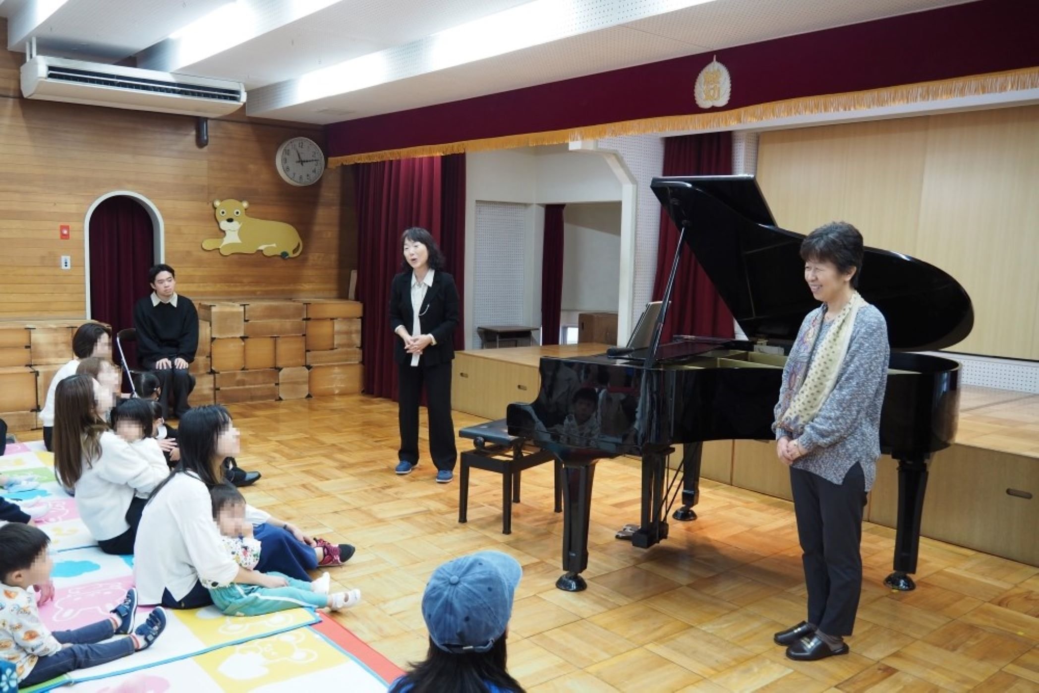 このコンサートは、同学部の船場 ひさお教授が伊藤氏を紹介したことにより実現したもので、園児だけでなく、未就園児や保護者、そして本学学生も集う地域社会と本学をつなぐ交流の場となりました。