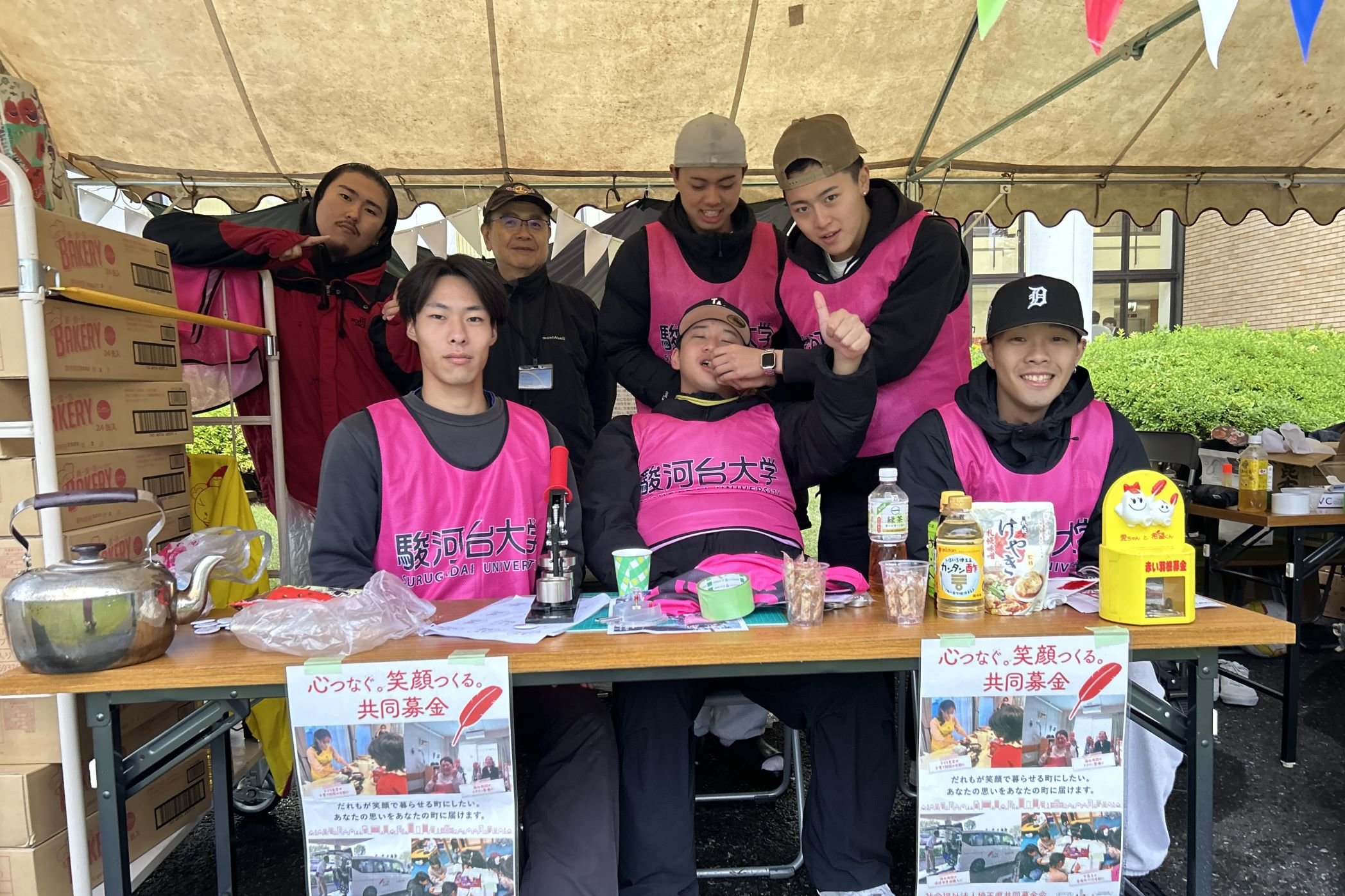 開催日には、フードバンクにご協力いただいた方や、研究展示「駿大生がフードバンクに取り組む意義」を閲覧してくださった方にオリジナル缶バッジをプレゼントしました。また、赤い羽共同募金の受付も行いました。