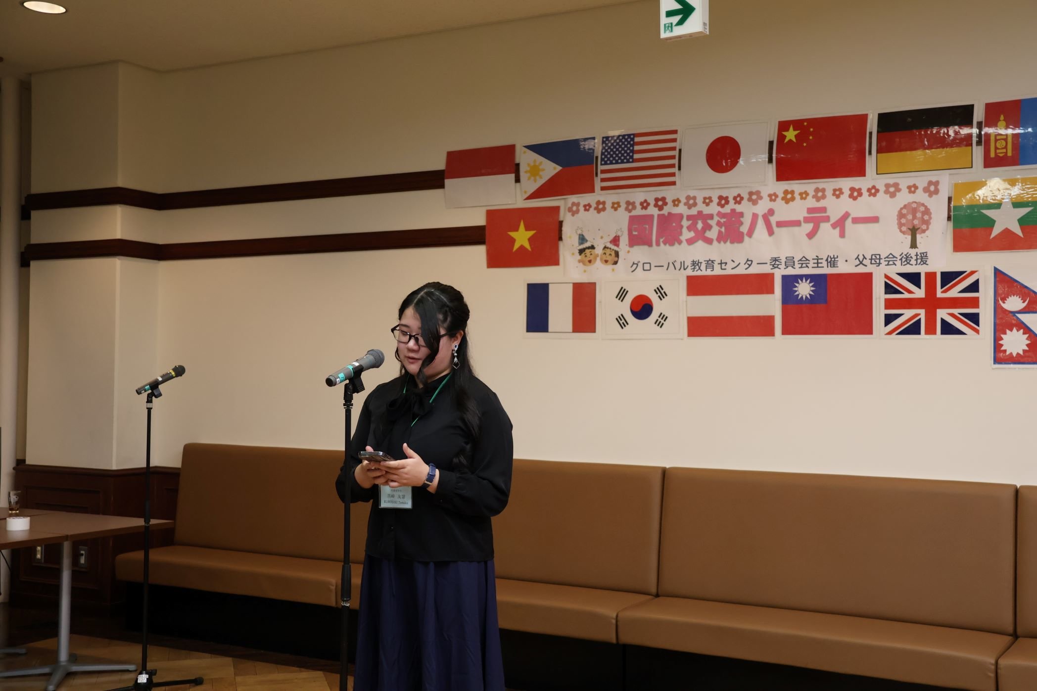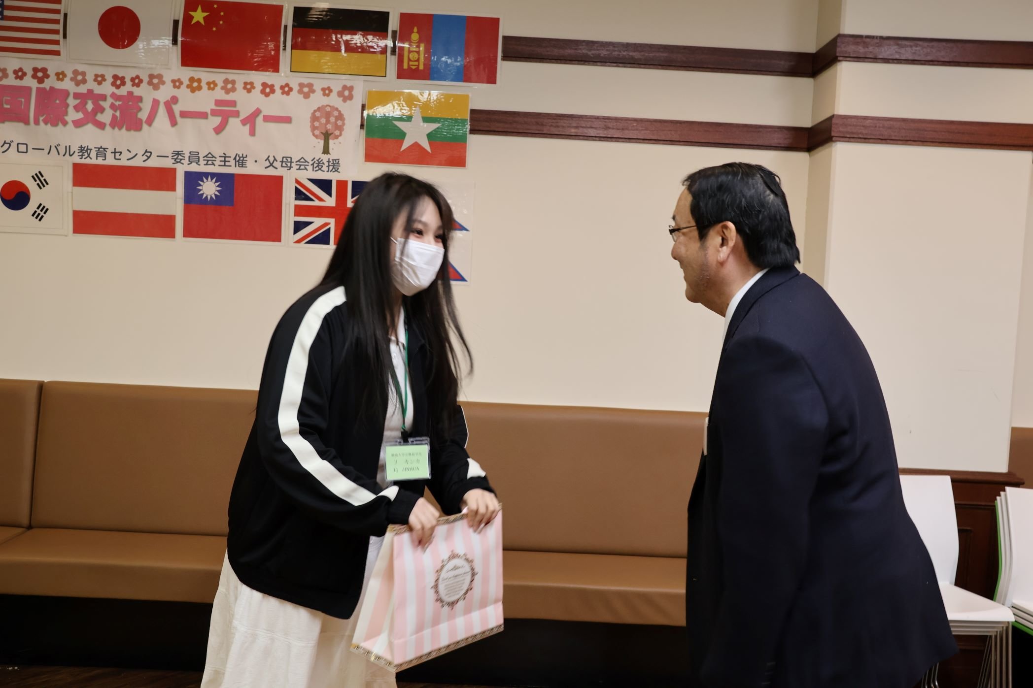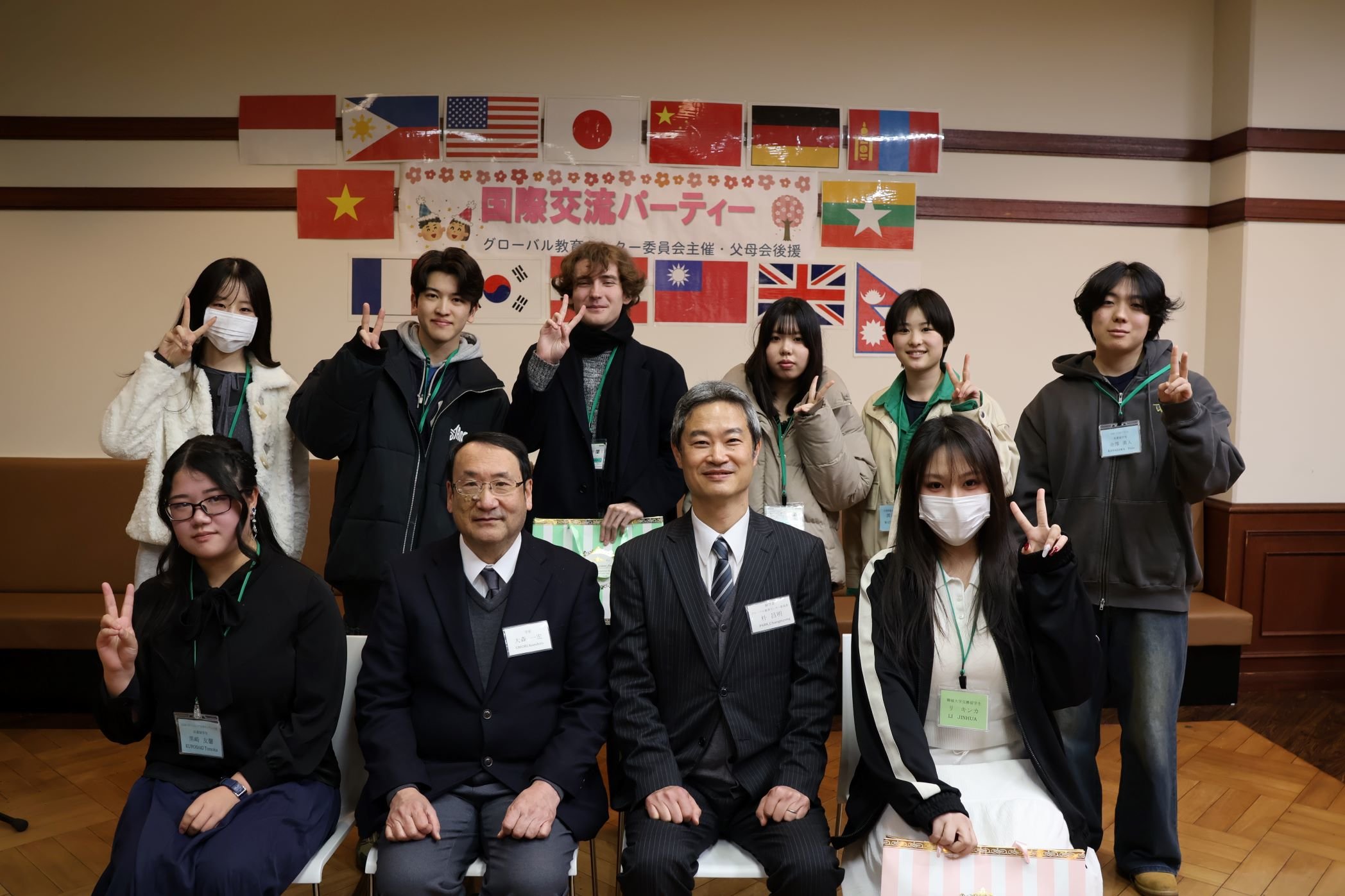 また、本学での1年間の交換留学を終え、ドイツおよび中国へ帰国する留学生の送別会もあわせて行われました。授業やグローバル教育センターの行事、さらには駿輝祭や飯能市国際交流協会の皆様との日本文化体験など学内外の活動に積極的に取り組んできた留学生たちのスピーチからは、来日当初よりも一層の成長が感じられました。