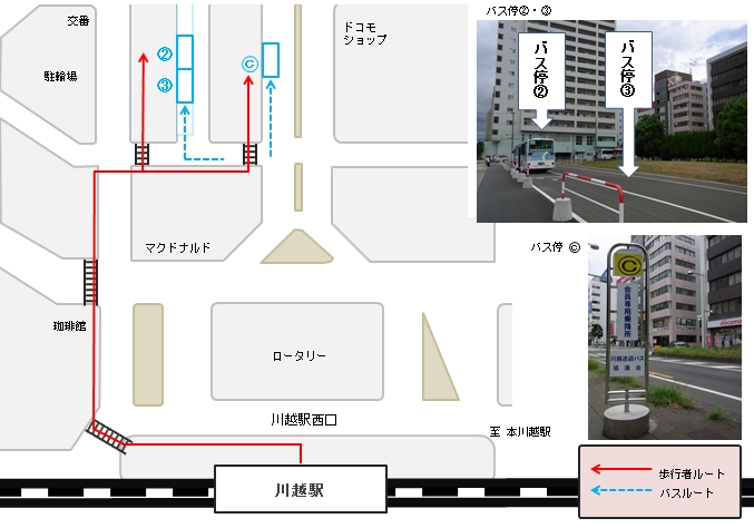 現在、川越駅西口の改修工事が行われており、ダイヤによって本学スクールバスの乗降場が異なりますのでお知らせします。