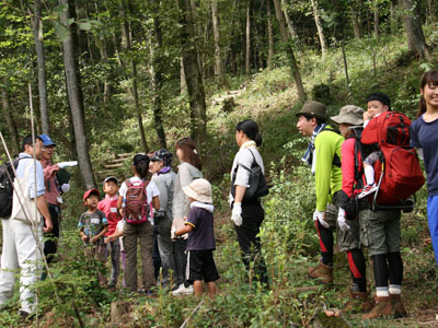 9月29日(土)、老若男女32名のゲストを迎え、駿大の里山で「駿大の里山 森の『香』と『食』 癒しのエコツアー」を行いました。飯能市エコツーリズムの一環として実施した本エコツアーの目的は、大学が取り組む里山での活動と現状の周知、森の役割と森から得られる恵みへの理解、地場製品の紹介と地産地消です。具体的な内容としては、ヒノキの枝葉からアロマウォーターを作成、コナラを使った炭焼き体験、ヤマザクラのチップで燻製づくり、駿大の里山散策、石窯でのピザ作りと盛りだくさんでした。