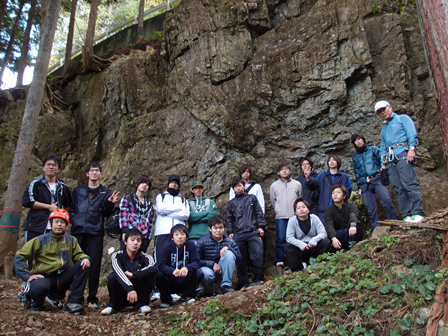 講師に山岳ガイドの小川元章さんをお迎えし、東吾野駅から少し歩いた岩場での、本格的なロッククライミングです。