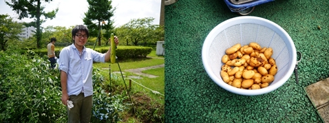 この制度を利用し、渕上沙紀さん(メディア情報学部3年)ら有志が企画した『収穫祭』が実施されました。当日は天候に恵まれ、駿大の畑でとれたナスやピーマン等でバーベキューを行い、ジャガイモを使ってポトフとカレーライスを作り振る舞いました。