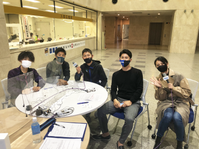 番組では駿輝祭実行委員会の学生をはじめ、先日箱根駅伝予選会において見事本戦初出場を決めました、本学駅伝部徳本一善監督ならびに駅伝部員に中継を繋ぎ登場していただきました。