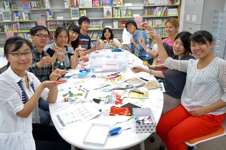 折り紙は初めて...という留学生も、日本人学生にレクチャーを受けながら、一生懸命七夕飾りをつくりました。七夕の話だけではなく、外国や留学の話などをしながら、皆で楽しく七夕飾りをつくることができました。