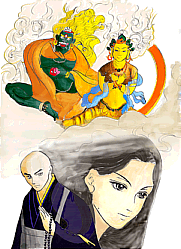 彼女のデザインするキャラクターには、誰もが一目置く。その理由をあげるなら、イラストの命である顔や体の輪郭線・構図のバランスであろう。この数ミクロのズレが、素人か玄人かの差をつける大きな要因といえる。輪郭線に限って言うなら、第一印象で、その人の力量を計る最大のポイントとなる。彼女には全く素人くささを感じられない。特にそう思わせるのが、目・手・頭である。なれない人の絵を見ると、どうしてもこの三点の輪郭線が不自然になってしまう。が、彼女のイラストは自然に近く、見ているほうにも違和感を感じさせない。 またキャラクターの中に自分がある。大抵の場合は、キャラクターの真似するだけで終わってしまい、全く個性が感じられない。試しに彼女の顎のラインと吉野の宮の隣にいる女君とを見比べたらいかがだろう。なんとなく似ているような気がする。のは、私だけであろうか。 最近では駿大のドイツ語の使用教材にもなっている『イラストで学ぶドイツ語』(三修社)のイラストを手がけた。このテクストをパラパラッと見ていただくと、明らかに彼女が描いたと思われるイラストが数点ある。