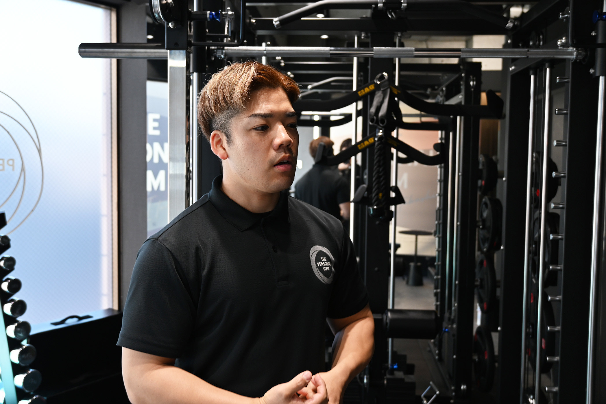 私自身ラグビー部での活動で大きな成績を残せたわけではなかったのですが、「自分に向いているもの」を考えた時、高校時代から部活動の補強として長く継続していた筋トレの経験を活かしトレーナーを志そうと考えました。卒業後は大手フィットネスクラブへ入社し、幅広い世代のお客様に対してのトレーニング指導やスタジオレッスンを中心に従事しておりました。実際にトレーナーとして働いてみて痛感したことは、私自身が頭で想像している動作を言葉にし、それを運動初心者の方へ指導することの難しさです。トレーナーである私自身が問題なく実施できる動作であっても、運動初心者の方がその動作を実施することは当たり前ではありませんし、仮に実施できたとしても正しく筋肉に効かせることができていないと意味がありません。
