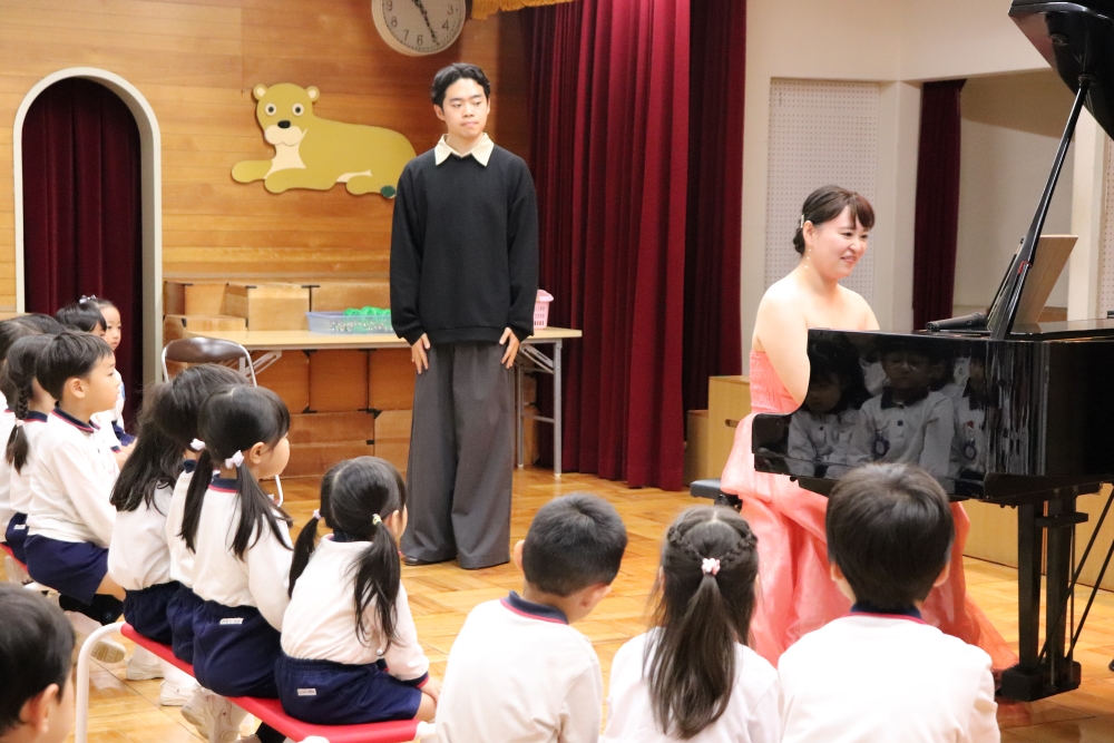2025年10月16日、駿河台大学第一幼稚園の遊戯室にて、ピアニストの伊藤 慧(いとう けい)さんをお招きし、ピアノコンサートを開催しました。