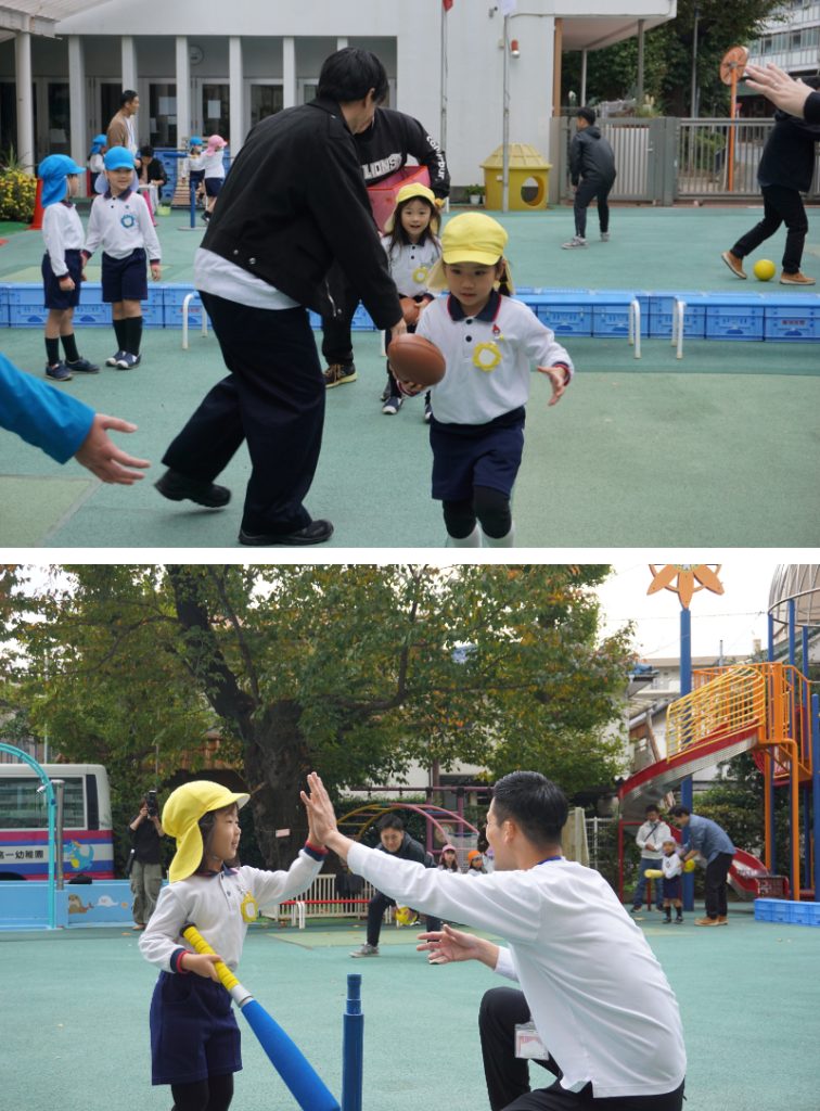 園庭では、「野球」「ラグビーごっこ」のコーナーが設けられました。