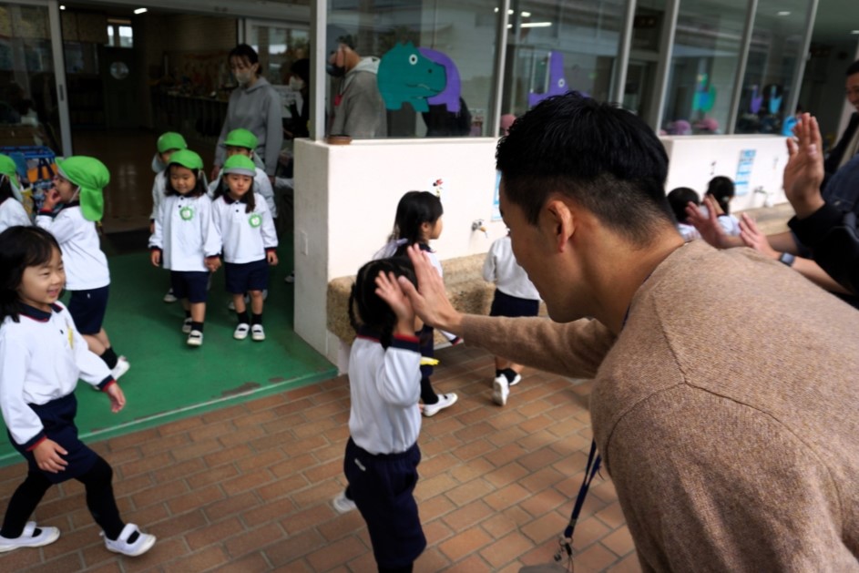 会を締めくくる際には、遊んでくれたお父さんたちへ感謝の気持ちを込めて、園児たちが学年ごとに大きな声で「ありがとうございました!」と御礼を伝えることができました。