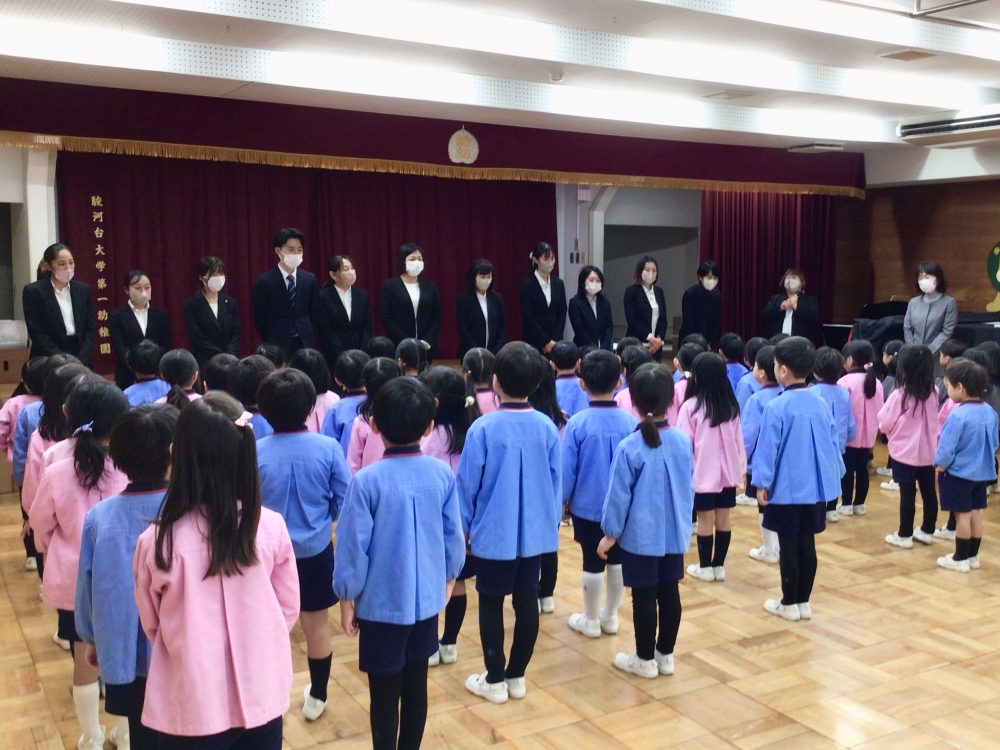 終業式に臨む子どもたちの姿は、驚くほど立派でした。特に年長組は、園長先生のお話をしっかりとした姿勢で聞き、元気いっぱいに歌を歌う姿は、まさに「かっこいい年長組」そのもの。
