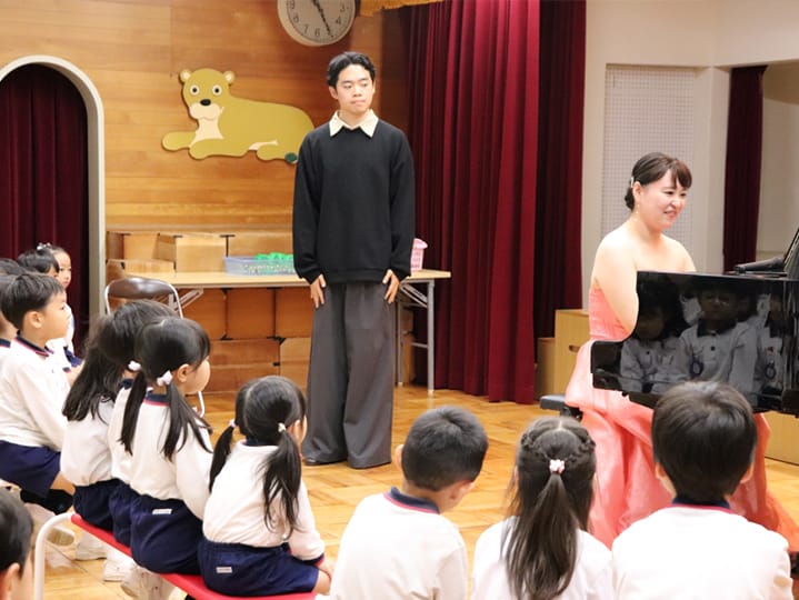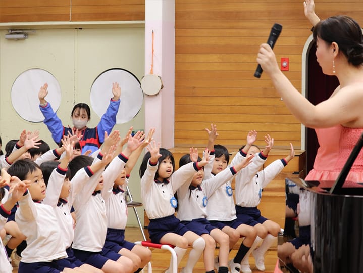 これからのグローバル社会を生きぬく力を幼児期から育むことが大切です。年中児・年長児には、ネイティブの講師が歌やリズム遊びを通して楽しく英語に親しめるよう英語指導を行います。また、伝統行事を教育に取り入れたり、茶道に親しんだりしながら、日本のよさや伝統文化を大切にする気持ちを育て、国際人としての基礎を育てます。